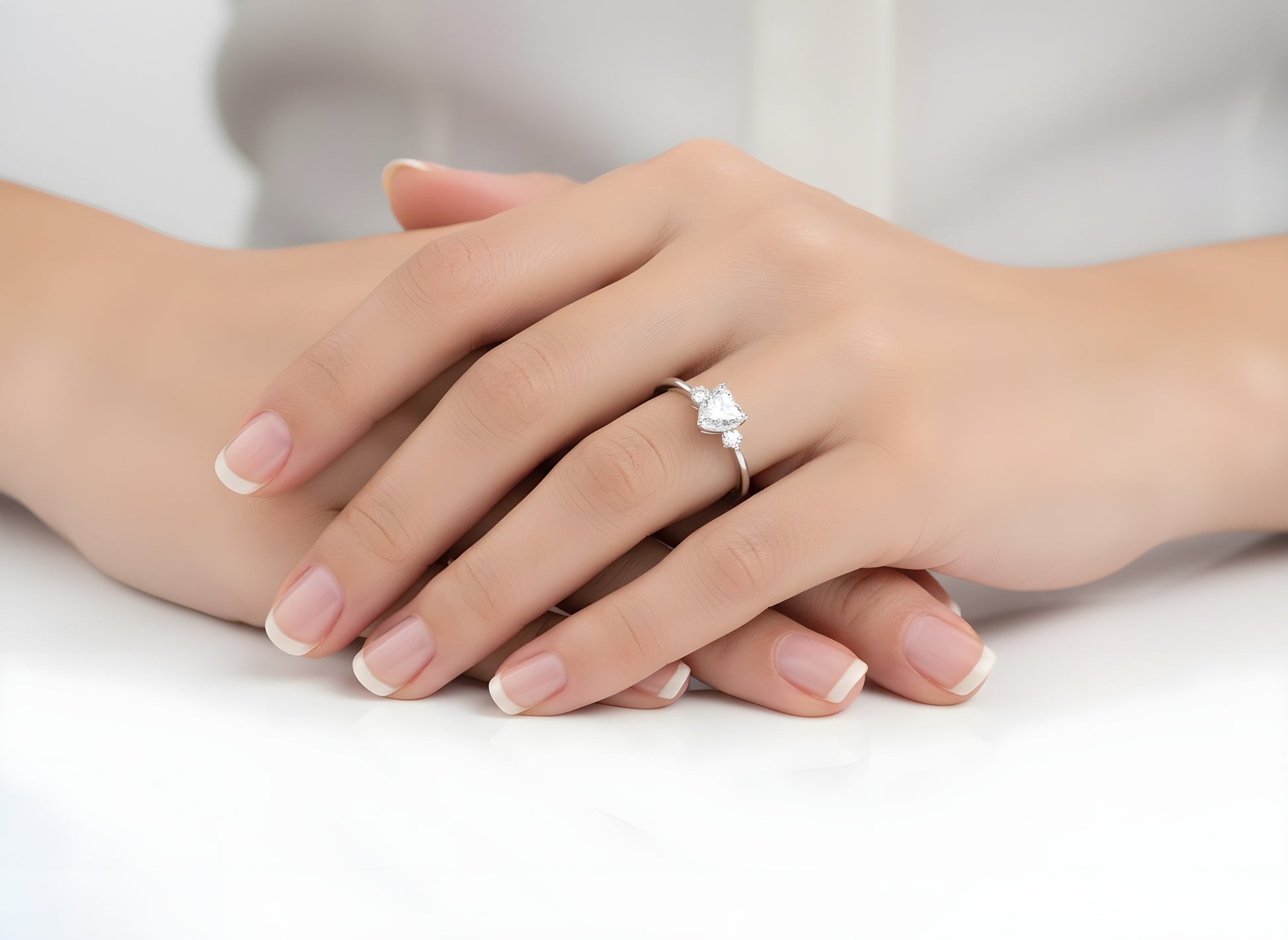 This romantic piece captures the heart. Literally. Our S925 Sterling Silver Heart Cut Solitaire Ring is centered with a luminous heart-shaped stone, flanked by two smaller side crystals. Set on a sleek silver band, it’s ideal for daily wear, promise rings, or celebrating your own quiet moments of love.